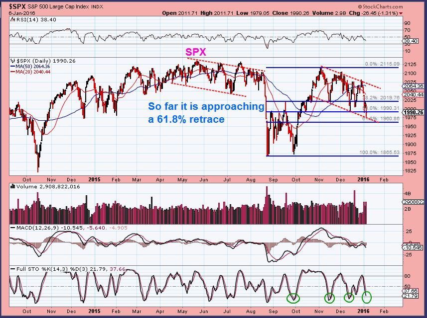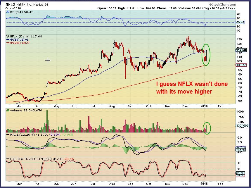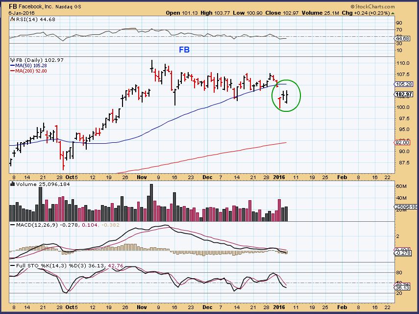 SPX – We’ve been discussing it for months here at Chartfreak. This Dec 31st chart showed that the SPX hit the top of its trading range, lost the 50sma, and was likely heading lower into 2016.