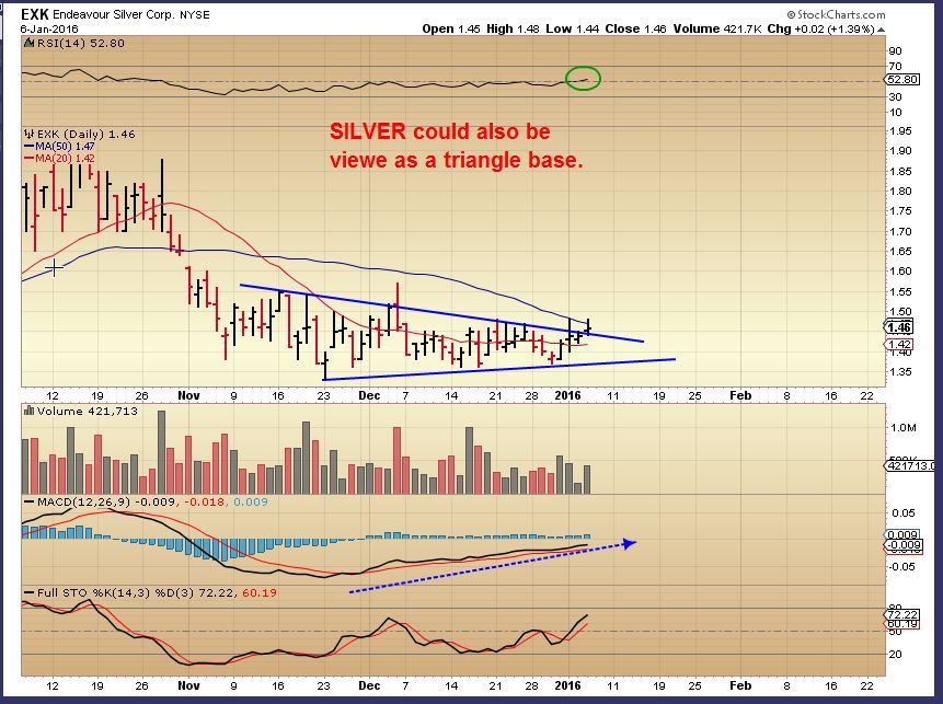 EXK : We also may have a Triangle formation in some silver stocks, similar to the one that GOLD just had. This chart should have said some “SILVER STOCKS” could be viewed as a triangle.