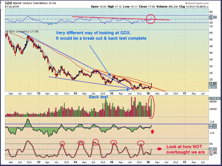GDX reversed from below $12.50 and also looked ready to break out above from a 7 month base. Above $15-$16 is important. It is now at $17 as of Feb 5. 🙂