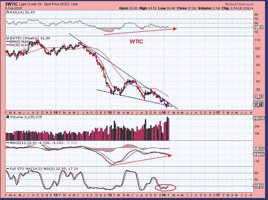 WTIC- This is still acting like a bottom, needs a bit more time to confirm in my opinion. It is a place for shorter term “traders” for now. Energy trades have been great %-Wise, but whip saw action is evident too. See the Thursday & Friday report .