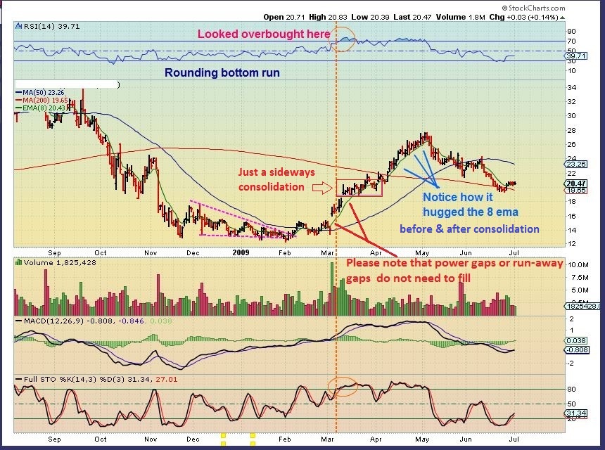 I dont want to get too crazy, but the potential in many of these Energy stocks is massive if Oil has bottomed and they return to former highs.  Recently many trade ideas popped up in Energy stocks. I looked at AXAS, EOX, CRK, PDS, SGY, BCEI, ERF, SWN, LNG, ECA, CPG, OAS, etc., and found good looking set ups.    I will mark up a couple of charts so you know what to look for.  ALSO do not forget the commodity stocks that I have been mentioning   ( VALE, FCX, AA, AKS, X, STLD, CENX, etc), they are acting correctly too.