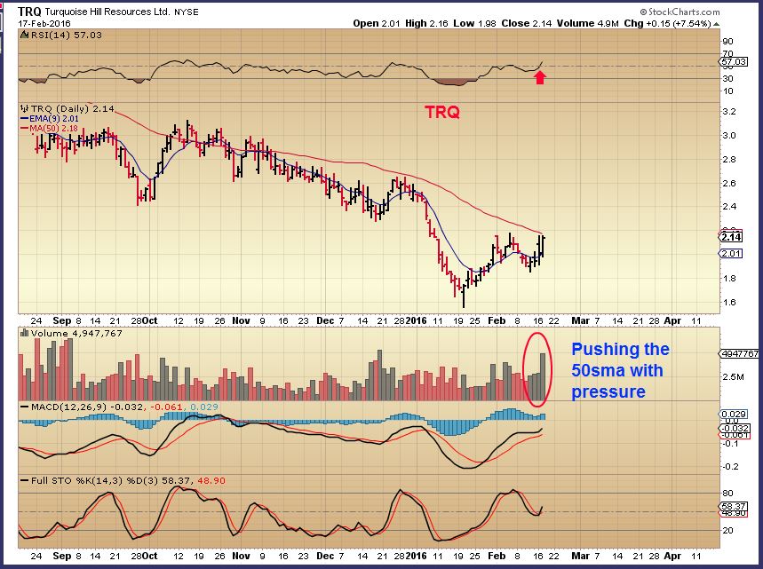 An example of a trade set up was found in  TRQ,  as mentioned in the comments Wednesday.