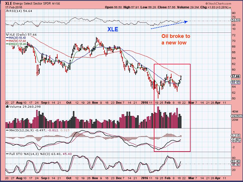 XLE– This is what I was pointing out recently as oil broke down. This is bullish. Yesterdays report pointed out XOM, CVX, and there are many more that are suddenly showing strength.