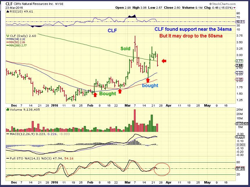 CLF I was watching the 34 sma. It dropped down near there and pulled a reversal and went green. That would be nice of it held.