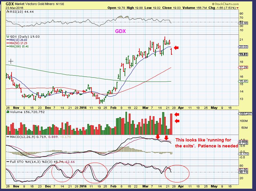 GDX –  And the Ultra bullish Miners also showed that they are vulnerable.I really want to try to focus on our next buying opportunity in Miners. If you traded with us in Jan- March,  we made great money here,  round 2 should be excellent for the patient shoppers.