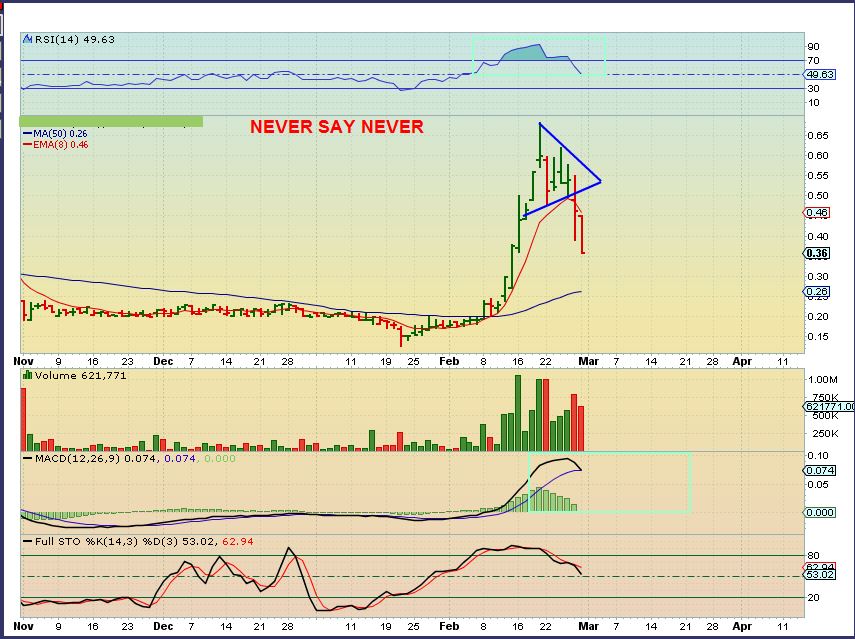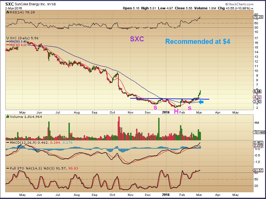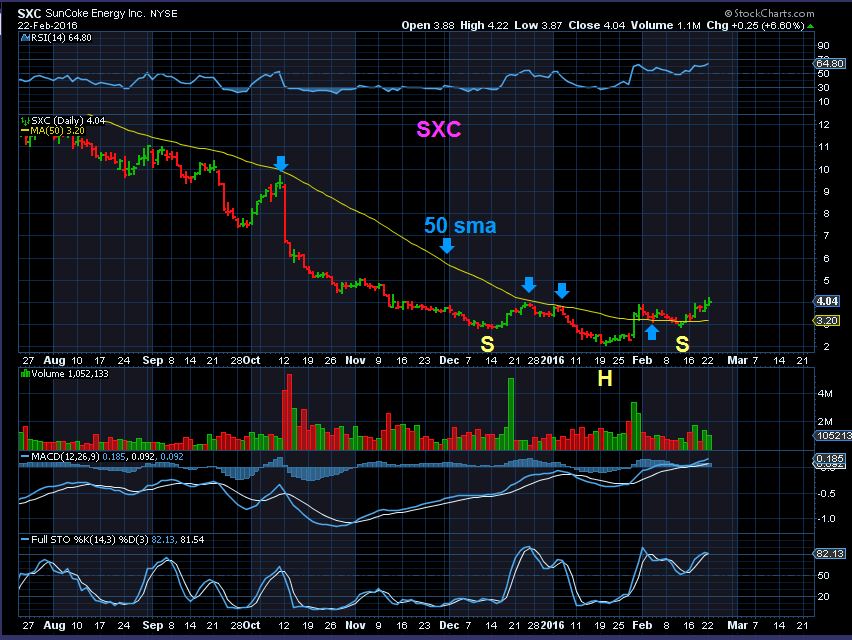 SXC – Now still running and at $5.56. This is to show that a nice 20% POP off of the lows does not make these overextended.
