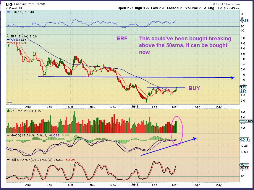 ERF – This also has a nice set up and could be bought in this area. The problem with energy stocks is the large swings. You could be stopped out 50cents lower and then it takes off.
