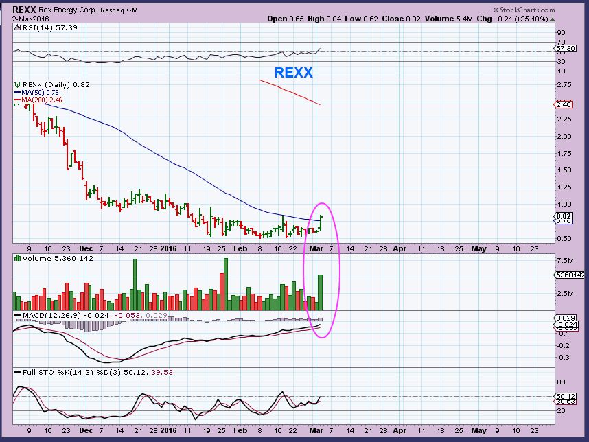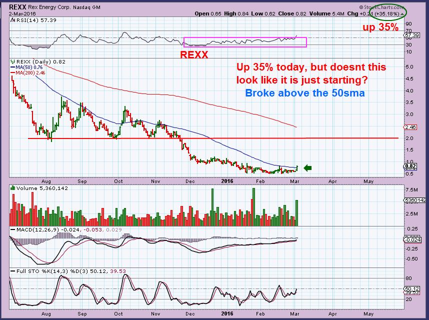 REXX – Zooming in, up 35% and breaks the 50sma.