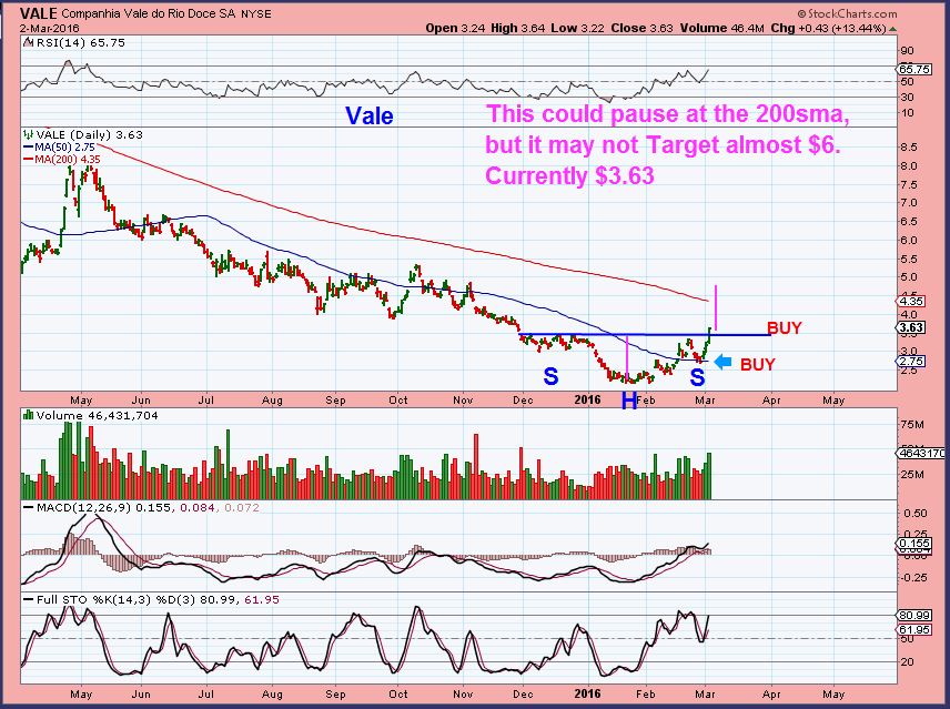 VALE has now formed an Inverse H&S base pattern in a jagged run higher. It still looks to have more upside, as it is just breaking higher. Actually many of these commodity stocks are just exploding upside.