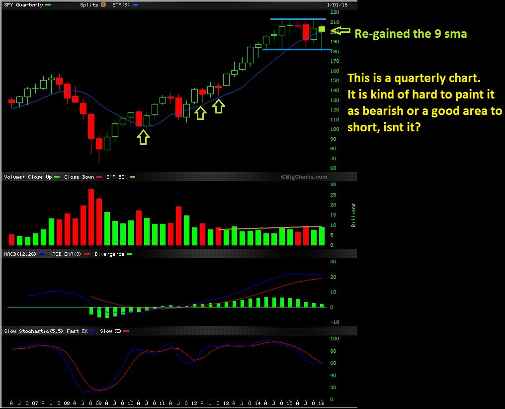 So I’m not sure what you mean by you are waiting for me to tell you to get back in. You mean long term? You could have entered at the ICL in Feb with a trailing stop for the rally, and then see if it drops later. I was thinking that the markets would continue to correct, but that quarterly chart looked rather impressive.