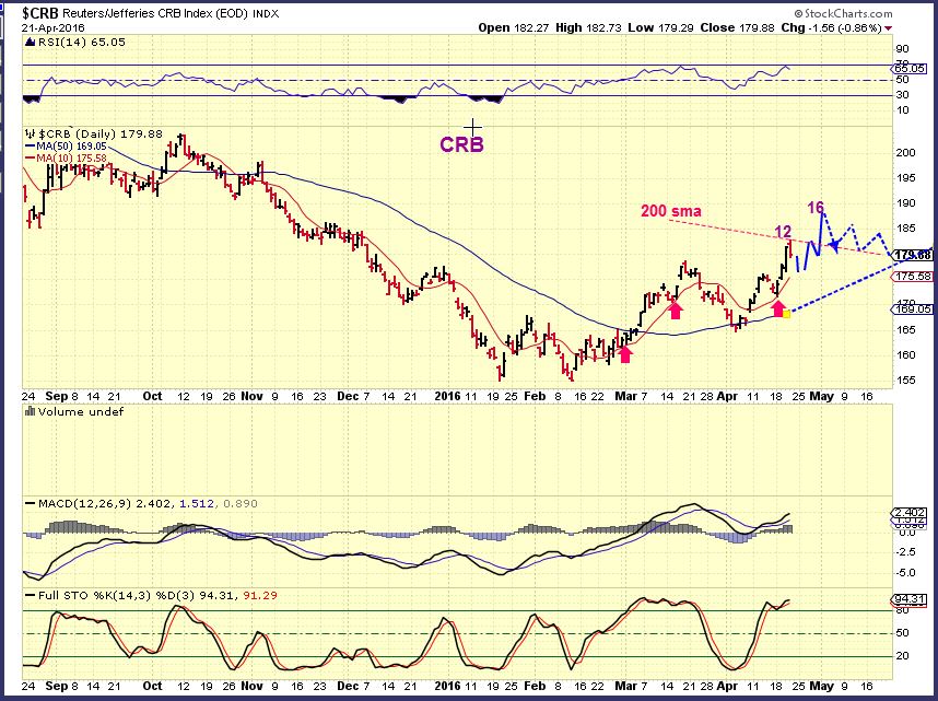 CRB – This was my Tuesday chart of the CRB. Notice the area where it was expected to run to , and then it might hit resistance.