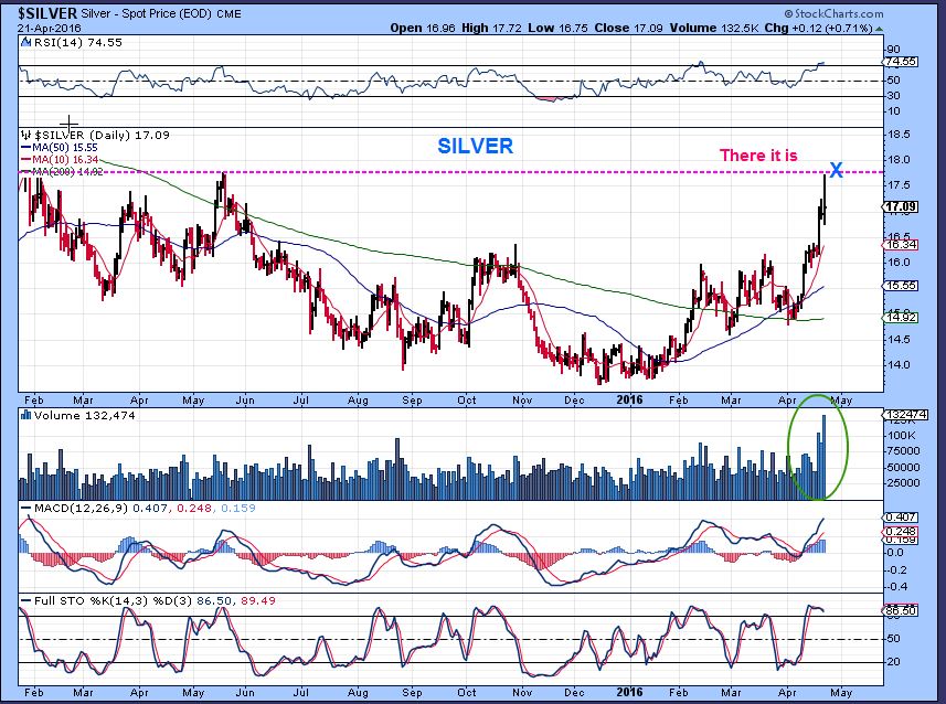 SILVER – Target reached. Now with the USD possibly ready to move higher, Silver can drop to. This morning both the USD & SILVER are green so far.