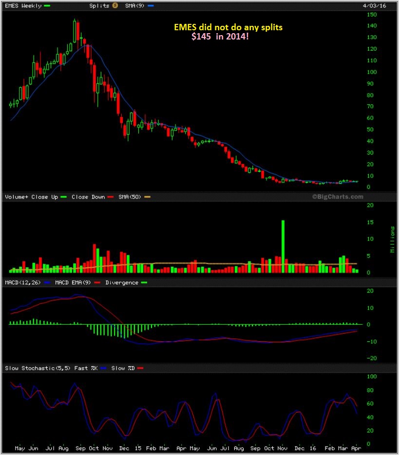 EMES WKLY – Now check out how that move looks in the big picture. THAT was a 200% move? In time, if this company can pull it together and Oil moves higher, the gains could be great. “IF” 🙂