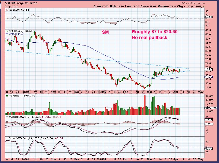 OAS – OAS ran up almost 170%. On the pull back it remains over 100% off of its lows. Yes it is up 13% yesterday, but it could run right to the 200sma and even break out higher if OIL goes above $40 again.