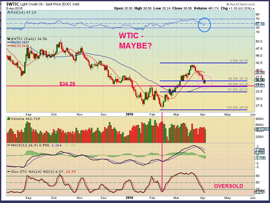CRB – April 6th, A SIGN OF STRENGTH 🙂 This is a swing in place too and cycle-wise this is also R.T. (Bullish). That could be a shake out at the 50sma, to lose the weak hands.
