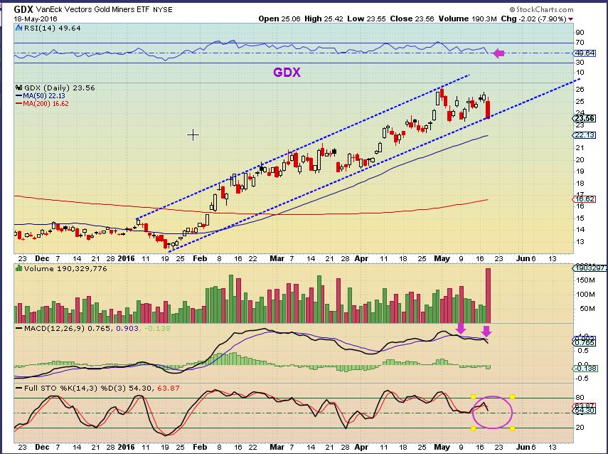 GG – A larger component of GDX. Breaking down? Warning sign? Leading the way?