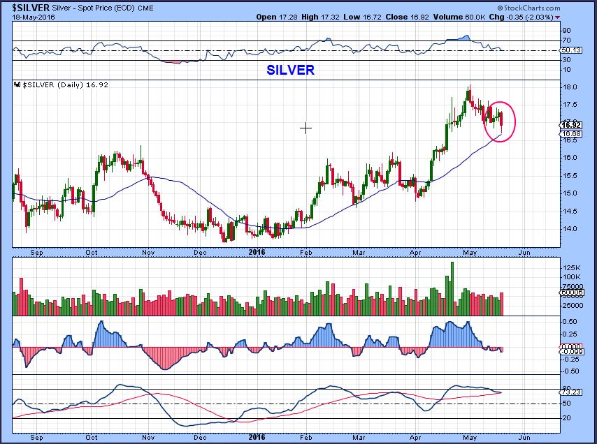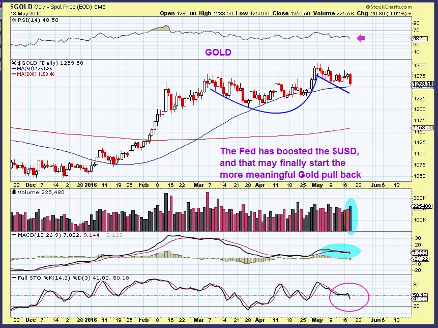 Believe it or not, the CUP & HANDLE is still valid in Gold – B-U-T – that reaction Wednesday was a huge warning sign, so lets not ignore it. Gold dropped and held at the 50sma, but that MACD and RSI and other indicators are showing deterioration. With the POP in the USD, This may start the drop in Precious Metals.