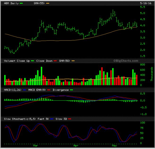 Currently I own HBM BARELY DODGING AROUND the 50sma, so I ‘m giving it time, I own LGCY, IPI, and a few others above the 50sma, but if something drops below my stop, and I say where my stop would be…. I am out. I can try to be clearer