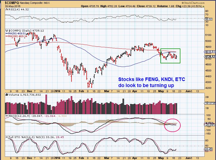 It fell eventually back below the 10sma, and on May 6 it broke below the 509sma. That can be a sign of weakness, and I usually point that out as a possible shake out or something worse.