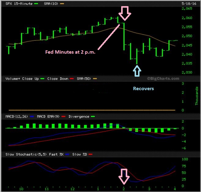 1. Notice the sell off right at 2 p.m.with the FOMC release, and then it started to recover a half hour later.