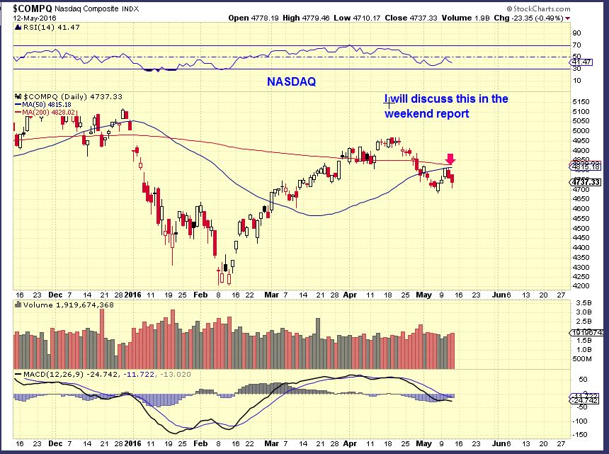 IBB chart from May 11 – I mentioned before that this Broke out and failed on the break out attempt.  That is when I go somewhere more productive until things improve.  The IBB is oversold, but hasn’t improved.  It is back inside of this base and could stay there for a while, so I will just discuss it in the weekend report.