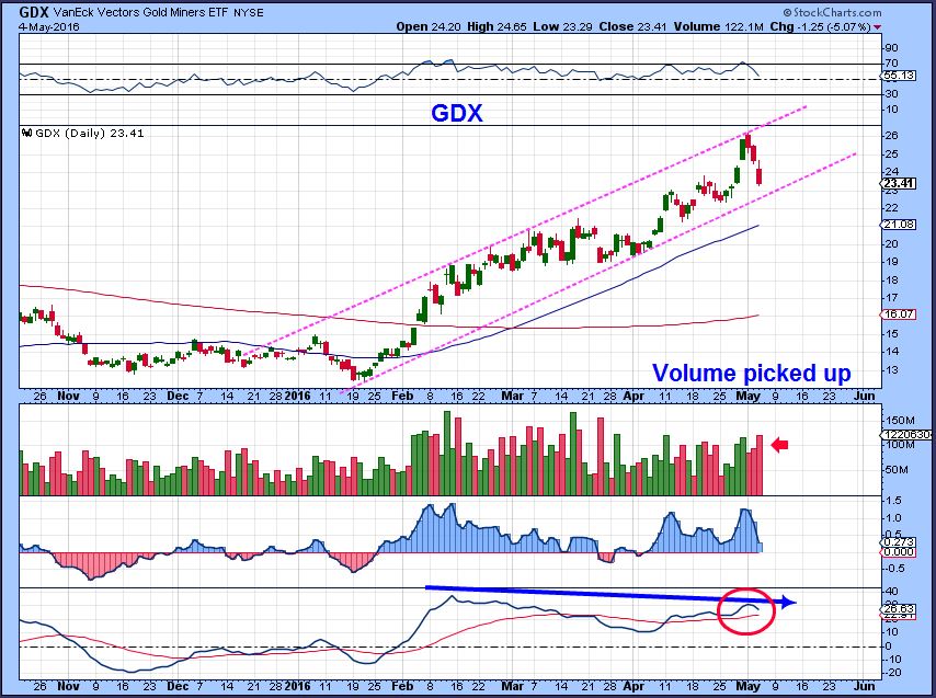Tell you whats the worst, I held miners and ERX heavily from december into january. That drop sucked, but I was confident we were seeing a double bottom in miners, and ERX had some positive things in the chart as well, so I held. We came back strong, and I sold most of miners for great gains, and like everyone else in the world, am waiting for a pullback. Now I get into CLF, VALE, AKS, CENX, etc, near the top of the move, when momentum divergences were telling me not to, but lo and behold, I did it anyway. Now we’ll have to be long term holders of these instead of miners. It’s like the smart money said, “here, I’ll trade you my AKS for your KGC”, and stupid me is like “yyeeiiii!!”. Oh well, I can always sell and start again. All I can tell you is that these stocks need to bounce hard tomorrow, and after today, I don’t know if they’ll be able to do it. We’ll see….