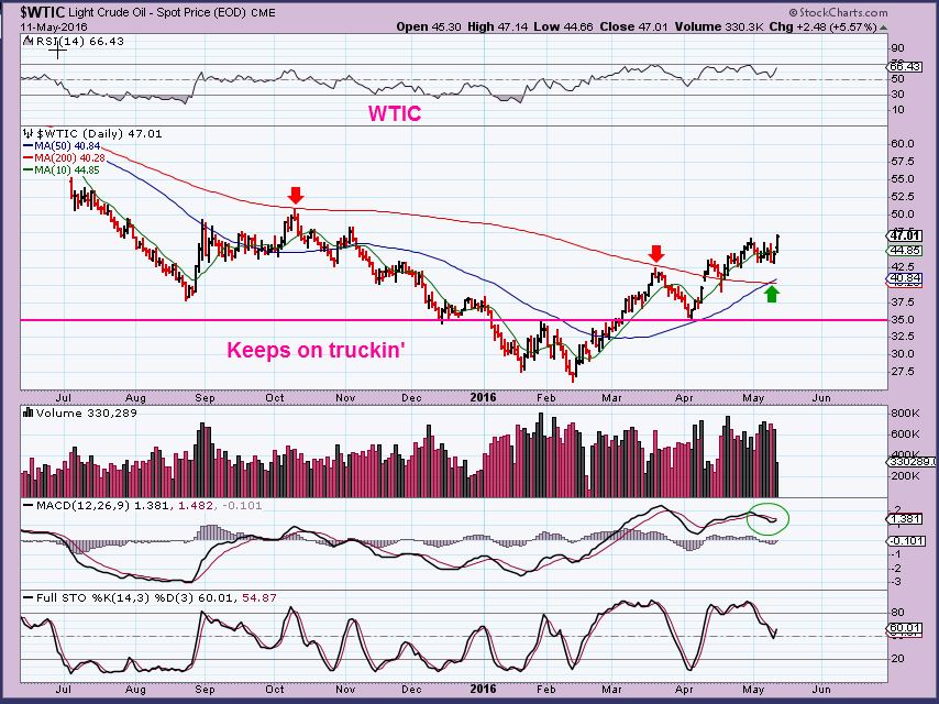 WTIC – Oil broke out of its sideways move.  ‘Timing’ –   I think the time to buy ( or keep holding) your energy stocks is now, because of the timing involved.  I can picture Oil breaking through that $50 zone and doing 1 of 2 things.  Either it then pauses and back tests and struggles at that area,  or people recognize it as a break through back into the $50’s and buyers step in. I want to be in Energy if we get that move higher.