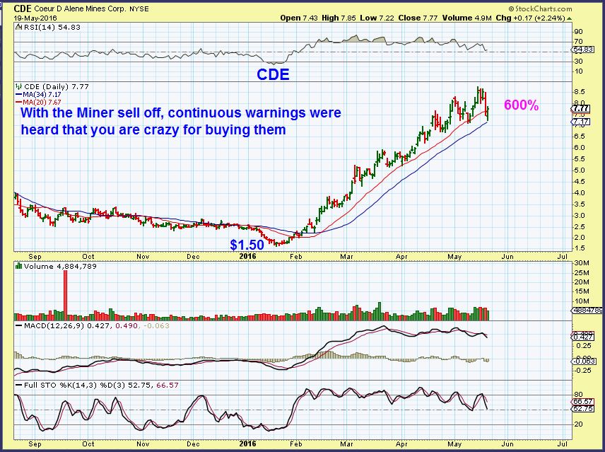 P.S.   Many were crying that you should never buy Miners after that bear market sell off.  Wait until they are well over their 50 and 200sma and the 200sma turns up.    So many times I heard that they are going bankrupt,  struggling with rising costs and debt and a low Gold price.  “You are crazy to buy them!”  Well their 200sma is just turning up now.  Should we buy them now based on that criteria? In 2008 I made huge  %-Gains coming out of the lows.  Simply Huge. It is a very rare event to be able to do 600% in 4 months.