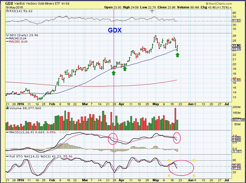 GDX –  GDX put in a reversal, with that USD reversal too.  This also made a lower high and a lower low in May.  If the prior highs are not taken out, this could begin the move down with lower highs and lower lows.  I remain cautious, that HUGE volume day is usually a warning sign.   Topping can be a [rocess and not immediate.  I will be monitoring these events daily.  It looks VERY BULLISH at a glance, but it isnt oversold and the MACD is weakish, etc.