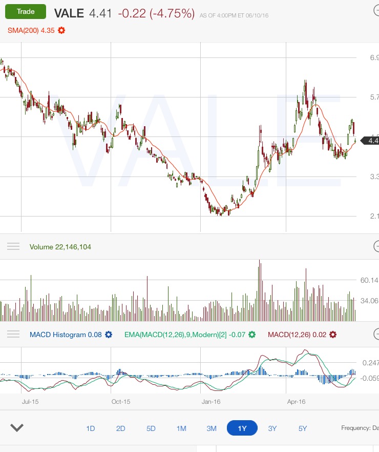But with Vale — the volatility is in calls. I was thinking at looking at Vale’s options chart, but I would not trust my read on it since I have zero experience in trading options.