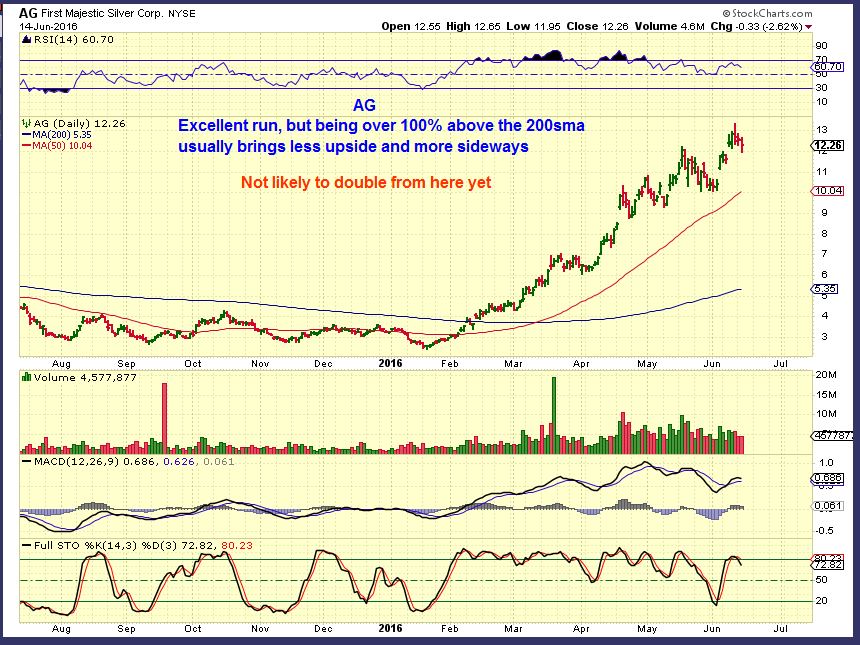 AG- One of my favorite Silver stocks, what an exceptional run, but AG is over 100% above the 200sma. Can it run further?
