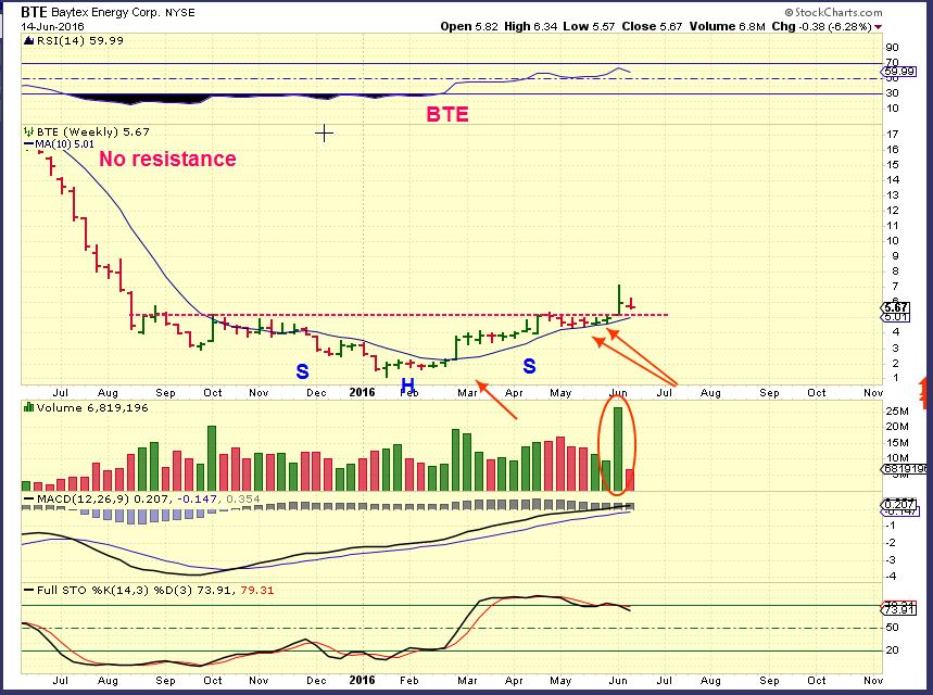 BTE – Broke out last week with strong volume.