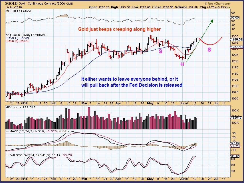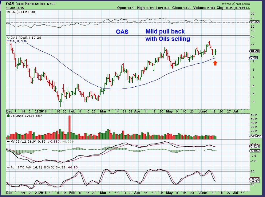 So what exactly will happen with the FED DECISION, especially since the BREXIT VOTE follows just 1 week later? Usually all you can count on is volatility at 2 pm. to the close and maybe into the following Thursday. I wanted to show the thinking on Miners, because I am Bullish on precious metals, but some of these have become a bit extended already. Will they run higher? They can, but I think chances favor seeing the bigger %-Gains from some of those that may not have been ready to run back in January – April. Some like AUMN are much higher risk, know & trade at your own risk level. Small positions are safer obviously. OIL is closing in on a DCL, and some Energy stocks are healthy looking, but not over extended. They too may be a better performer. I will cover more in future reports as things unfold and we see where we are. Patience pays off at times.