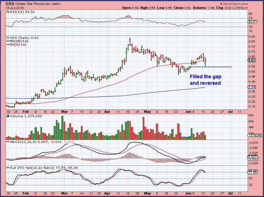 GSS put in an interesting reversal yesterday. It filled the lower gap and regained the 50sma all in 1 day.
