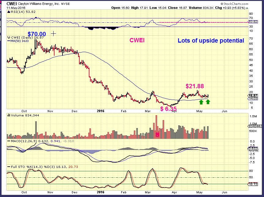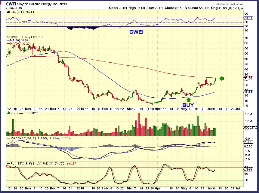CWEI – Who can forget this one? May 11, after running from $6 to $21, it was a buy at $15.