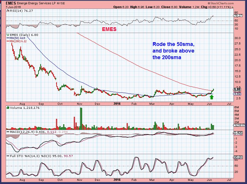 CWEI – Interestingly, it has jumped this week from $25 to $32.  It may pause at the 200, or it may just break out, but the point is that OIL is lingering at $50 area and some energy stocks are setting up and running ahead of oil. This was a $6 stock in March, I love this stocks base and this will be one that we look back on and realize that we could have ridden it from $6 to $70 in months. 🙂