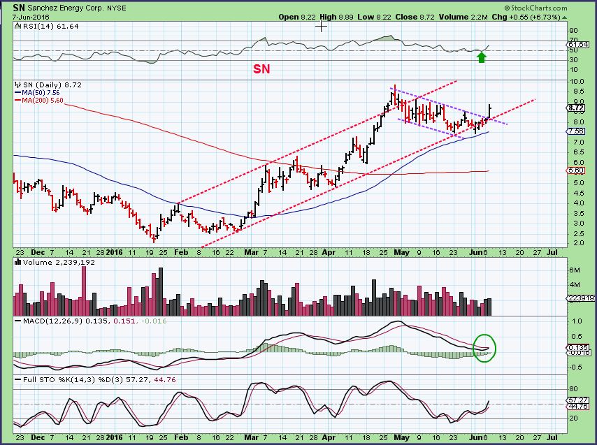 SN – I have pointed out this stock a few times over the past couple of months. Each time it has proven to be a good pick. A strong run in early March, a run in April, it looks ready to run again here.