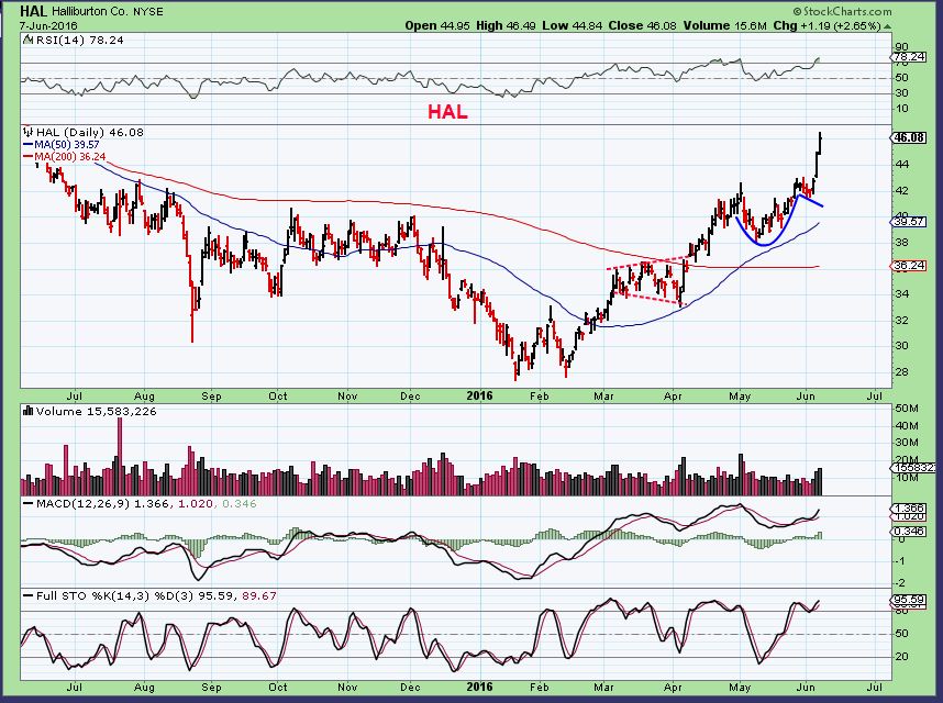 HAL – It formed a cup & handle from May, and it also broke out this week.