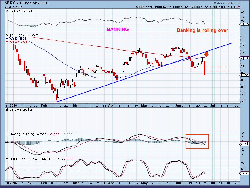 Any follow through on Monday and we’ll see a break down of those May lows.  I am looking at Banking and I think we can see where this is heading. If this is a clue, expect further selling and not a 1 day panic crash.
