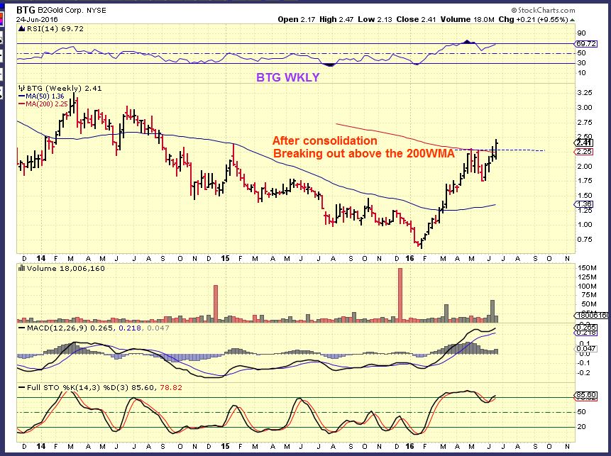 BTG WEEKLY – Do you see why I like BTG here too? Notice the break over the 200 sma ( Weekly basis).