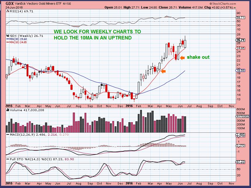 GDX WEEKLY – This week GDX held the 10 WMA and moved higher.