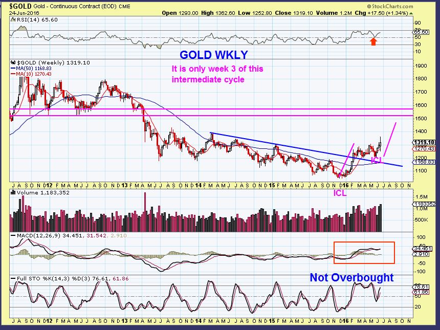 GOLD WKLY – Gold is not overbought on the weekly. The chart remains bullish.