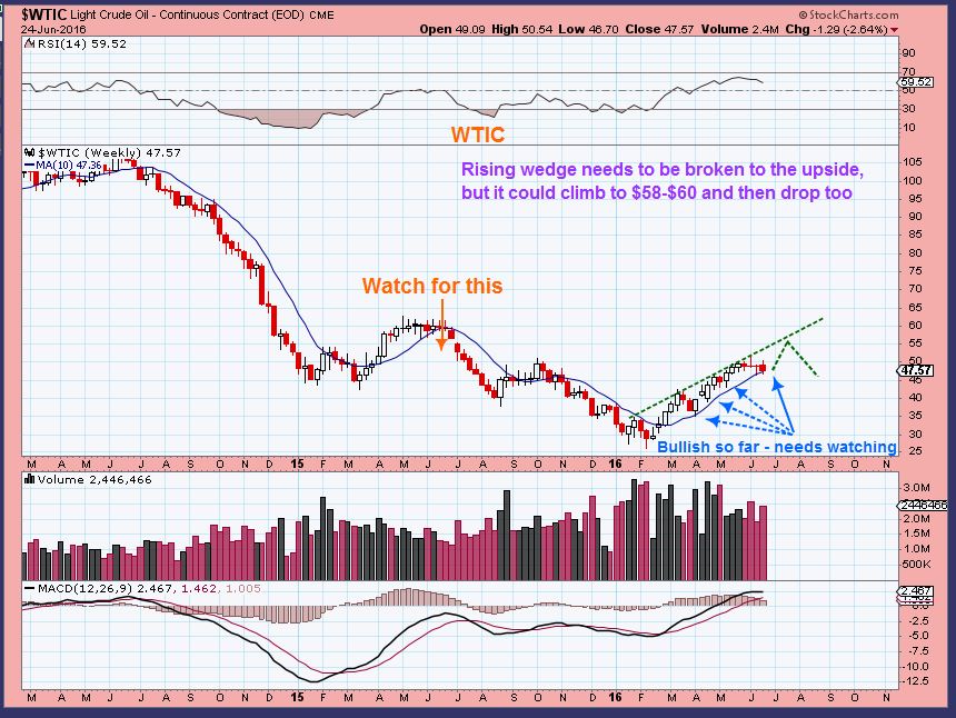 WTIC – We are on the 3rd daily cycle for Oil.  I expected Oil to make a move for $58-$60 in this daily cycle.  The recent lows were not taken out, so oil is not failing here, but let me tell you how I view things when the unexpected shows up.  By the way, this drop on Brexits vote was unexpected, and I still dont really know why Oil sold off ( and I dont care what any new news articles are giving for theory unless they reported it before the vote. Everyone has a theory after the fact). My view now is…