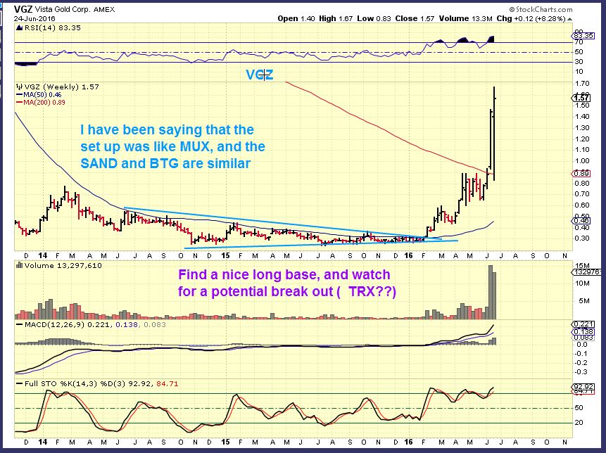 VGZ WKLY – Yup, broke above that long term resistance ( 200 WMA) and rocketed higher.  They wont all do that, but it is a bullish set up that often pays off.