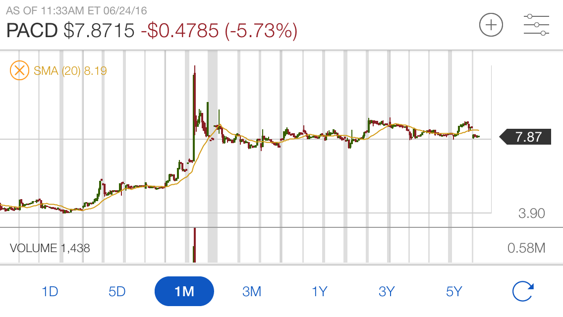 I am bleeding today with PACD – one of my largest positions.. But I have faith in the fundamentals and am willing to ride it out…. I am keeping an eye on that 1-month chart https://uploads.disquscdn.com/images/5746278607d07625095a451d87d33281860cb2e51fccc29dcfcb4753d1bfccac.png