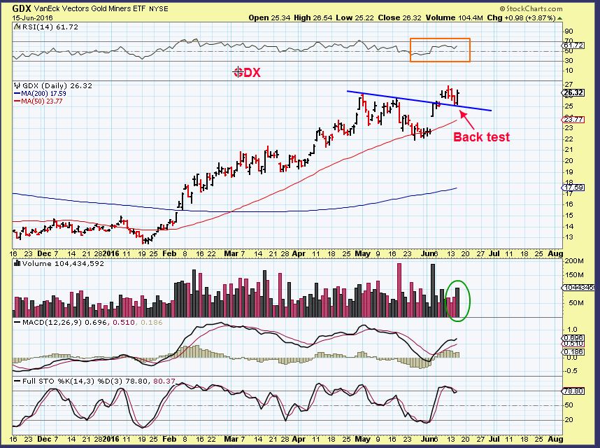 So GDX broke out and back tested,  I am thinking that GOLD may do that too. Often we see a break out and people start ‘buying the break out’, and it reverses lower to back test.  Gold may or may not do that.