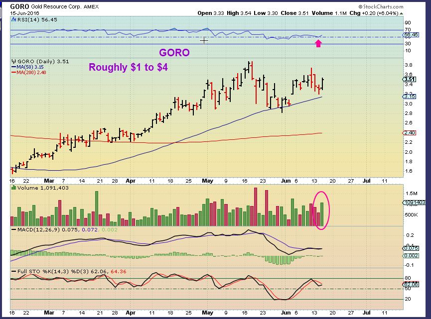 GORO – GORO is not over-extended either. This set up looks bullish.