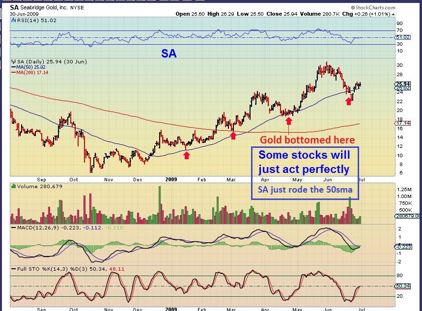 I showed this chart of SA 2009 in a prior report.  I wanted to show how the miners can move in a bull market. They run, get extended, and pull back. A normal stairway higher.