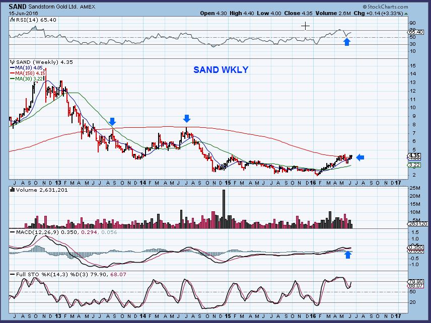 SAND WKLY –  Sand has been working through resistance and looks ready to succeed