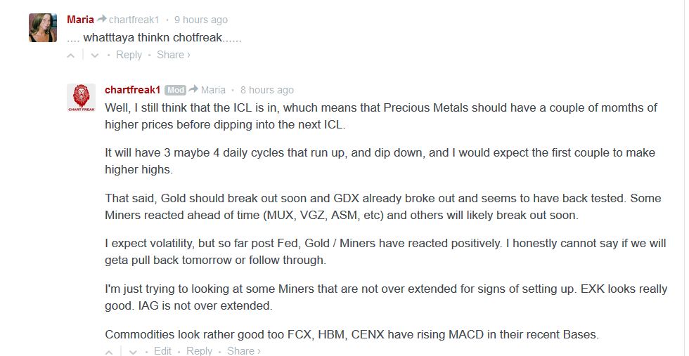 I personally have bought and would hold at least some Miners when Gold is coming out of an ICL.  The set ups shown above were bullish reversals after the Fed yesterday. Many were bullish reversals in early June at the 50sma too.  We are seeing volatility, but low interest rates are Bullish for Gold.  Best wishes!